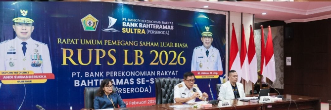 Wakil Gubernur Sultra, Hugua, menyampaikan hal tersebut saat menghadiri Rapat Umum Pemegang Saham Luar Biasa (RUPS-LB) PT BPR Bahteramas Se-Sultra di Aula Merah Putih, Rabu, 25 Februari 2026.
